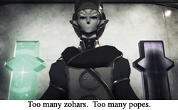 And don’t worry: Xenoblade Chronicles 2 does recognize this! A very important character notes that it is terrible that Blades are 100% beholden to their masters, and he publicly disparages the fact that Blades cannot have a culture of their own while they are forced into eternal servitude. Unfortunately, the people that keep talking about this are distinctly the villains of the story, and it is even particularly noted that the lead villain in this case was likely driven to his homicidal beliefs because he was attached to his own misanthrope Driver (who, incidentally, is the space pope). So there are four Blades that object to living as eternal slaves, but they are also the Blades you fight most often, so their positions as villains are firmly cemented for 90% of the tale. And let us emphasize once again that one of ‘em straight up murders the hero before the prologue is out, which leaves a bit of an impression (and scar). So the message is clear: freedom is nice an’ all, but every good Blade is happy with being a servant. They’re all so fortunate to be here and fighting with you!