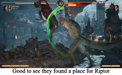 - Favorite Fighter: Reptile has long been beloved (hey, my favorite color is green), and his current potential to randomly morph into a full or partial lizard is distinctive. He pairs well with Kameo Sareena, who similarly morphs into her demonic form. Those two crazy kids should get together.