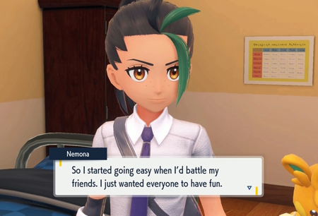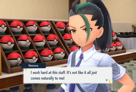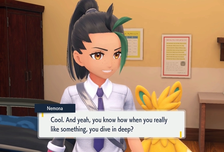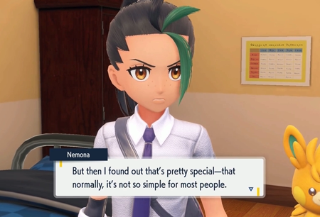 The important thing here is that Nemona is never treated as anything worse than “weird” for her OCD, and, while a lot of people don’t understand her, a whole lot of NPCs actively look up to her and her skills. So, basically, she’s doing great, particularly once the player-trainer comes along.