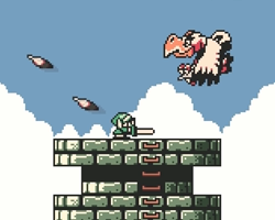The Eagle Tower is dominated by the Evil Eagle, a gigantic bird summoned by the Grim Creeper. At this point in the adventure, Link has already bested Grim and his smaller birds once, so now the wannabe Skull Kid is pulling out all the stops. Link must use his mirror shield to hold back the gusts, and only some deft swordsmanship will send the creeper back down to the (dream) Earth.