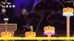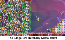 Future 2-D Mario games seemed to focus on one overarching gimmick, and were just (“just”) generally good otherwise. New Super Mario Bros. Wii was all about 4-player simultaneous fun and occasionally tossing a “friendly” toad into a lava pit. New Super Mario Bros. 2 took a cue from New Super Mario Bros.’s turtle shell powerup, and highlighted running through stages as quickly as possible for cash prizes. New Super Mario Bros. U dialed everything from New Super Mario Bros. Wii to 11 with four player fun plus Yoshi and squirrels. And its Luigi-based upgrade took all that and added the speed emphasis/challenge of New Super Mario Bros. 2. Considering 2-D Mario has become a Katamari of old ideas combining and growing, we should have expected the next logical step…