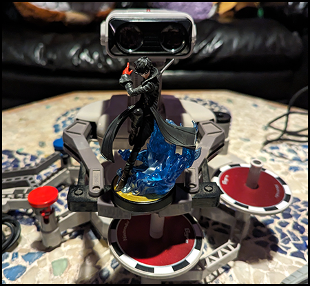 • Amiibo Corner: Oh my god, Becky, I mean, uh, gross, look he’s just so… black. Those red gloves really stand out when the rest of your character’s outfit is so dark. But at least we got a cool, translucent blue stand out of the deal. And look out! He’s got a knife!
