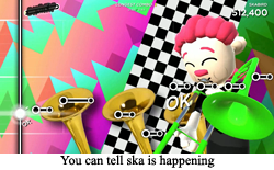 Collectibles: “Collecting” the right to play these songs as “just” rhythm challenges without the associated minigames seems to be a thing. The previously mentioned Konami tracks also also collectible. There are also a series of treasure chests that only unlock by playing the tunes “straight” without errors. Other than that, SCRC plays like a collectathon all on its own, so basically try to find all 120 stars.