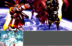 Is it related to Street Fighter: The standout rival character of the piece is Princess Devilotte de Death Satan IX. As you can likely guess from her name, her father is the grand Emperor Death Satan. And, as one may expect, Emperor Death Satan pilots the Z-AKUMA mech, a giant robot that looks a whole hell of a lot like Akuma. And Z-AKUMA is invincible! Well… until Emperor Death Satan gets upset that Devilotte likes a boy, and they fight, and yada yada yada Emperor Death Satan is dead now. You can control a Devilotte that has inherited the Z-AKUMA, though!