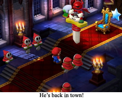 Accomplishments: He froze Rose Town in terror with paralyzing arrows. Those that were not already petrified had to hide indoors, and hope that friendly old men would distribute water to the ailing toads. As evil plans go, there is a complete lack of a point here (does Rose Town have any natural resources to exploit? Roses? Lazy shells? Something?). But Bowyer does want to freeze 1,000 victims, so this must be some kind of start. Wait a minute. Are there 1,000 people in this entire game?