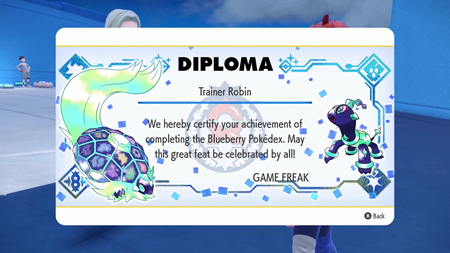- Say something mean: I do not care for the concept of the Blueberry Terrarium. I feel like the Pokémon franchise has always been about exploring, and finding the strange and unique creatures that might be in a place that no one has ever seen. We all know I did not catch the only Zapdos in the world back in Kanto, but the designers knew how to make you feel unique in detecting a thunder bird. But when you are completing a Pokédex for an area where Pokémon have already been wrangled, you lose something. Sure, Director, I am proud to have caught everything, but that Tauros didn’t exactly naturally occur in this Geodesic dome, did it? Paldea and Kitakami both felt more real.