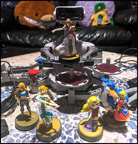 - Amiibo Corner: So many Zelda. Smash Zelda is from Twilight Princess, with an ornate dress, cool gloves, and the handicap of being the worst Zelda. Breath of the Wild Zelda looks like she is going to take charge and do some research, while Tears of the Kingdom Zelda has a traditional outfit with a bendy sword. Wind Waker Zelda is expressive but should be Tetra. Skyward Sword Zelda wins, because she brought her big ol’ bird buddy.