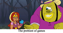 And Arzette: The Jewel of Faramore decided to roll with that to make it a feature. A:TJOF retains all the squishing, squashing, and MS Paint appeal of any given CD-i cutscene, but it offers one crucial change: everyone in Faramore is a goddamned weirdo. Even back in 1993, The Legend of Zelda series was serious business for many of its fans. Yes, there was “excuse me, Princess” Link, but he was still a serious warrior that used his shield to vault explosions. Wand of Gamelon Link… was not that. Wand of Gamelon was a parody of an adventurer. So it works when Arzette has an actual parody of an adventurer, Dail, who we can all laugh at. He is meant to be funny! In fact, thanks to the writing direction of Arzette: The Jewel of Faramore, we basically have a videogame that delightfully feels like a sitcom. Complete with Arzette being the only competent person in the cast (and her moderate bloodthirst), there is an obvious throughline between Princess Arzette and Futurama’s Turanga Leela. Poke out an eye, give her a ray gun, and Arzette could adapt to the future with aplomb.
