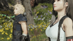 a “mystery”, she had all the answers; now that it could be straightforward, she’s got nothing), it quickly aligns the audience with the state of FF7R’s characters. When Remake was released, many people started playing the game “knowing” what was going to happen. And so did Aerith. One shadow tornado/split timeline later, nobody knows what comes next. And same for Aerith. You might know Cloud is lying during his flashback (and that whole sequence not coincidentally lays “something is off here” on much thicker than in the original Final Fantasy 7), but you do not know how that is going to resolve in a world where Ghost Sephiroth is haunting Cloud’s brain and making him doubt his teammates’ various boob scars. This is a whole new story, and it will not be constrained by the past or an audience’s expectations.
