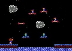 • I can do thisBy Zeus: I understand it is a typical videogame “thing”, but why do the thunder clouds only hate Balloon Fighter? Did the penguins make a pact with the horrible god of Balloon World?