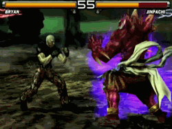 Perhaps as a metaphor for depression, this sucks all the fantasy out of the franchise for a game, and the vast majority of combatants are normal dudes and ladies with normal dude and lady problems (and one Spank Bot). So the final boss is once again Heihachi, and all the imagination of the franchise had to stick to Tekken Tag Tournament with the half-werewolf, half-naked lady (long story).