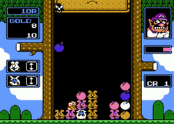 A puzzle game with an interesting playstyle vaguely based on 2-D platforming. You are Toad, and you have to juggle monsters and bombs to clear the playfield of malcontents. Birdo seems to be helping with bombs, and then Wario arrives to ruin your day and rain monsters on your silly mushroom hat. It is hard to call this puzzle game “bad”, as it does get kind of fun as speed/monsters ramp up in later levels; but Wario’s Woods is completely forgettable. As it appeared on the same systems as Tetris and Dr. Mario, it is pulling a failing grade by virtue of not living up to its own legacies.