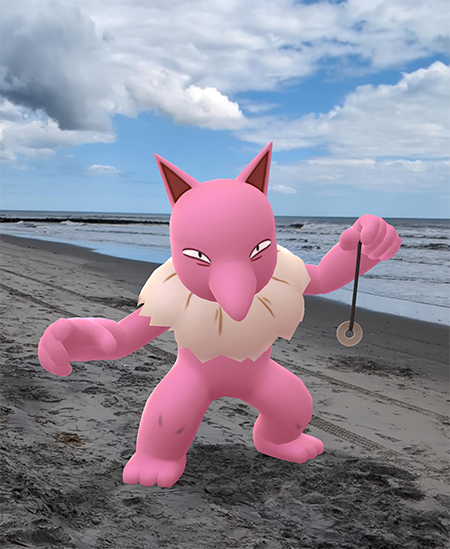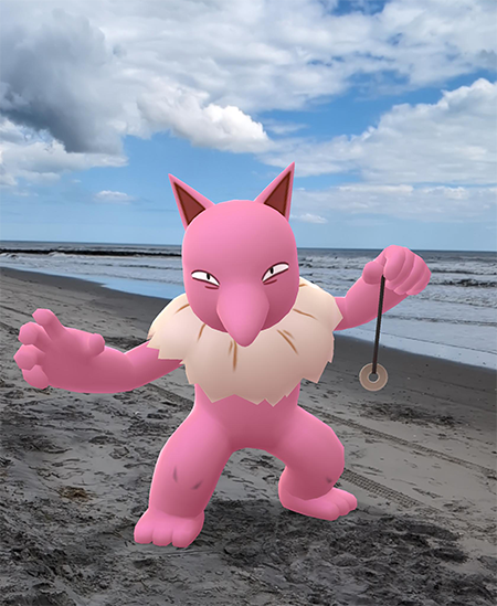 Nidoking was designed by Ken Sugimori, and is one of the first Pokémon ever created. As anyone who played through Pokémon Red/Blue can attest, a great many sprites and statues scattered around Kanto generically look like Nidokings. And that makes sense! Nidoking has a general “kaiju” thing going on with its bulk, teeth, and horns. So if you are trying to parse a “pocket monster”, something like Nidoking would probably spring to mind.