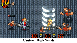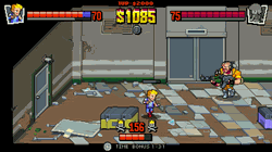 Favorite Fighter: It certainly is not Jimmy Lee, who appears to be a hobbled version of Billy Lee for some reason. Marian wins of the default cast for being the most unique (and Uncle Matin is second for being a great “big guy”) , but if we are including the myriad of extra characters, I’ll choose Burnov. It is about time Abobo had some decent competition for “playable sub-boss”.- Fill ‘er Up: Unlike many beat ‘em ups, health restoring food can be practically unlimited here. You receive a free hotdog, burger, or turkey dinner every time you use “crowd control” and defeat multiple opponents at once with a special move. That’s great! An excellent reason to risk your last few health points in favor of a reward! Unfortunately, there is a slight delay before the food materializes, so maybe back off when dudes are falling over. It is demoralizing to die just as a powerup appears.