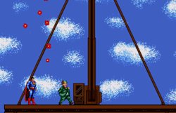 Mister Mxyzptlk appears as a random annoyance in a few shoot ‘em stages. Given he does not seem to be actively trying to murder Superman, just bother him, his silly little cameos are welcome.