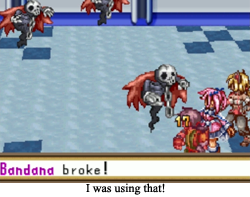 What’s wrong with Lunar: Dragon Song: Whether it be a concession of being on a portable system, or a genuine indulgence from the developers, you can save anytime, anywhere in Lunar: Dragon Song. And if you have any kind of “perfect run”-based obsessive compulsive disorder, this will drive you to an early grave. General mook battles are always a threat to your health and sanity, because not only are enemies numerous and violent, but they can also do permanent damage to your wallet. Thievery is a common ability among many malevolent critters, and when you have an item stolen, you do not get it back at the end of the battle. I guess that angry bird just swallowed the bone sword you were hanging onto? Seems as likely as anything else on this wicked moon. And if you needed that random item for a sidequest, sorry, bucko, but now you are out of luck. Hope that wasn’t one of the arbitrarily limited sidequest items! Now you either have to abandon the quest (which still has an attendant penalty fee!) or reset your way back to before the battle. Always savescum, kids!
