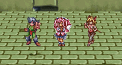 And to drive a stake through the heart of anyone hoping for immortality here: running drains your health. Not running away from a battle, just the simple act of moving faster than slow in any environment. This is true of dungeons where running may help you avoid an on-screen encounter, or while skipping around a completely safe town. If you want to break turtle speed records for any reason, you will lose HP. And this applies to every member of your party. And if anyone is below 1/3 health, they are too injured to run, so you are damned to walking. And you better believe this will be a constant irritant when someone dies in battle, is revived with 1 HP, and you must hoof it back to a safe zone without the ability to engage the slightest haste.