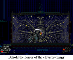 - Favorite Boss: The final opponent of the third level (the first stage that takes place in modern times) is an Eye of Odin-possessed elevator. It is difficult not only for the regular reasons of this game being difficult to handle, but also because it is confusing trying to figure out how to damage a damn elevator. But at least it is interesting! The previous stage’s boss was just an angry Viking! After the boss before that being an angry (presumably) different Viking.