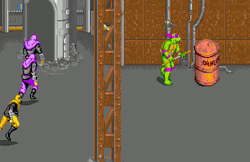 Canisters of ooze are your only pickups this time. While much of this game feels like someone at Konami looking back fondly at old TMNT games and finding ways to improve, the lack of gameplay pizza makes you wonder if anyone understood these reptiles.