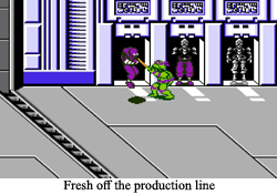 Turtles zoom through the streets on rocket-powered skateboards for a level. Also, this area ends with the turtles hopping in the Party Wagon, and then crashing it off a highway for literally no reason.