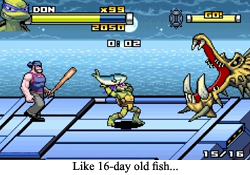 Playable characters are close enough in style that you will not be upset if you get stuck playing as Leonardo, but contain a multitude of differences. While things like their different stats and special attacks seem significant, what is really important is that everyone has a unique taunt. Keep playing that Gameboy, Donny!