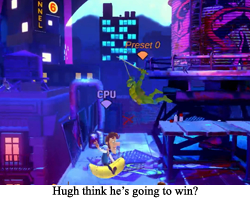 - Just play the gig, man: We are dealing with a lack of familiar, licensed music again. And what counts as the soundtrack sounds weirdly… Well, it may best be described as “someone didn’t understand the 80’s”. It sounds like elevator music attempting to be radical. It’s not bad, just… what is the opposite of compelling? This is music for turtles to nap to. And the victory jingle is catchy, but indescribably absurd.