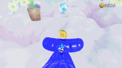 And speaking of Mario, our new favorite bot (sorry, Rock) borrows liberally from Super Mario Sunshine. And even Nintendo has forgotten that game! But Astro Bot has a “dual laser” hover jump that may as well be assisted by FLUDD. And a chicken powerup that allows for wild vertical “blast” jumps. And a doggy attachment that sure seems to be simulating Mario’s horizontal water-blast dashes. All of these Sunshine-esque skills are utilized wonderfully between traditional levels and boss fights. And, even if you did not enjoy the ol’ FLUDD moveset, the fact that these talents are expertly showcased with Astro Bot really drives home how Astro’s curators understood the assignment. This isn’t just a good 3-D platformer, this is a good 3-D platformer that understands nearly thirty years of 3-D platforming history. They even understood the most important thing about a character landing on frosty ground is that they immediately and inexplicably start ice skating.