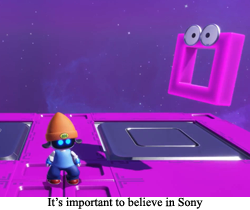 But Astro Bot is not only a 3-D platformer. Sony decided that Astro Bot would attempt to dethrone Mario from not only a gameplay perspective, but also a mascot perspective. Astro Bot is presented as no mere protagonist; no, Astro Bot is supposed to be the face and savior of the Playstation 5.