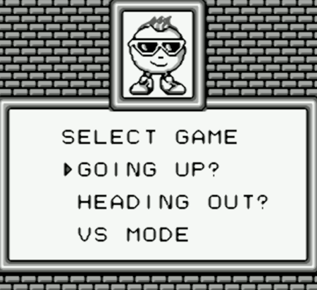- Pick your Poison: There is a 30 level story mode, and a 99 level time attack mode. They are labeled “Going Up?” and “Heading Out?” respectively. The theoretical explanation is that Kwirk is fighting up a tower to rescue his girlfriend in “Going Up?”, and “Heading Out?” is the challenge mode that sees Kwirk escaping to head home (to a V8 factory?). However, these labels relay no meaning in the game itself, so we can consider this a dark preview of games in 2024 claiming to feature an “arcade mode”.