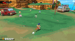 Gotta Catch ‘em All: So every stage has five lanterns, and you must find three of those to complete a level. Additionally, there are little turds, and there are five of ‘em to a stage. On top of that, every spot has three distinct souvenirs that are usually tucked away into hidden areas. And, finally, some stages contain a hidden tanuki, which can only be discovered by bonking damn near every inanimate object in the area, and eventually finding where your buddy is disguised. So, in short, if you want to “100%” this adventure, you have a lot of exploring to do.- On the topic of Collecting: If there is one thing I hate in a videogame, it is when you have an obvious fork in the road, and one route continues the level, and the other leads to a “dead end” that contains treasure (or, in this case, collectibles). Some stages of Bakeru subvert this trope by allowing enough of a view of the stage to distinctly see the dead end from a distance, so obviously that route must be the challenge-for-prizes direction. Unfortunately, a number of later stages forget to provide this essential wedge, and you just have to guess which way is no-backtracking forward, and which one might score you a cool pennant. And, dear reader, I can assure you that I choose the path that requires replaying the stage again every time.