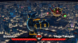 It’s not just about the robot! Bakeru is an action platformer, and you start with the ability to jump, use drumming sticks to attack, and a transformation skill. You are a tanuki, so of course you can change your form. And your first transformation allows you to shrink down to Issun size. Unfortunately, Chibi Bakeru cannot attack, and this ability really only has the utility of getting you through mini-sized passages. It’s cool, but it is basically a circle key for circle doors. After that, you get the requisite “strong transformation”, Kintaro, and that makes it so your normal drum attacks have greater strength and range, but are also slower. Big whoop. I had only acquired those two powers at the end of my stream, and I was ready to write off the transformation mechanic as a redundant novelty.