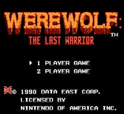 So let’s talk about something that may have been produced by intelligence bordering on artificial. Today’s game is Werewolf: The Last Warrior. It is a 2-D action NES title from 1990. At the same time you could have played Mega Man 3, Ninja Gaiden 2, or even Smash TV, Data East gave us, well…