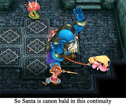 Later heroes, heroines, and significant objects from Trials of Mana, Legend of Mana, Children of Mana, and Rise of Mana can all be found in silly cameos across the world (and there are a few references to Adventures of Mana, too). Also, someone stuck Vuscav’s flag on Turtle Shell Isle, presumably confirming that something very sad happened to that poor turtle.