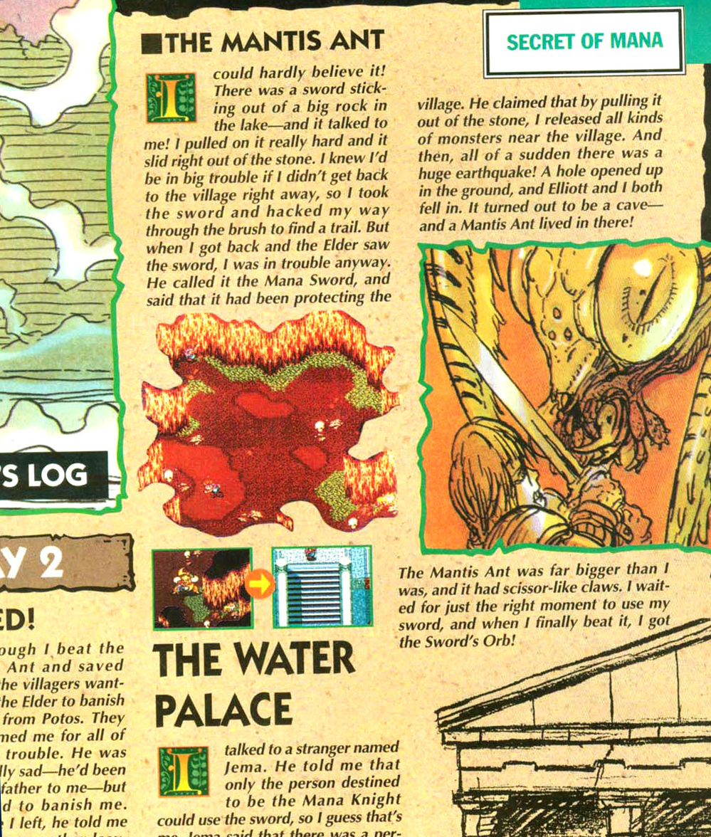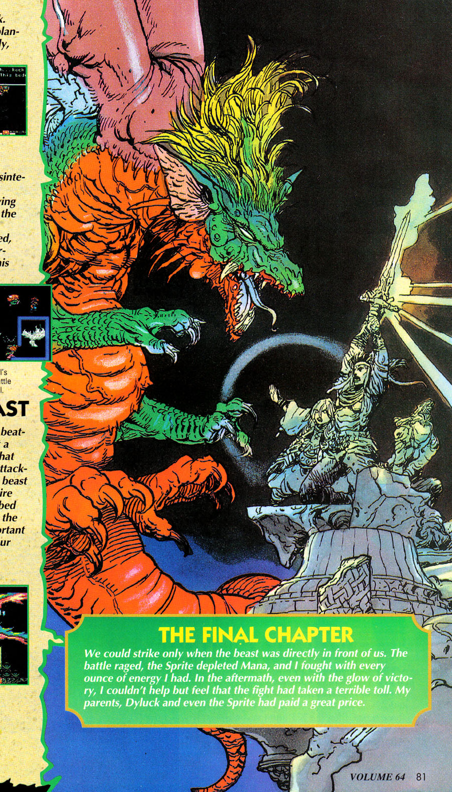 But it is also about how three months of coverage of the entire damn game was relayed as a first-person account of the adventure. At the same time Nintendo Power was trying to bolster interest in Death and Return of Superman (“The Grab and Throw technique is almost always your best fighting move.” Thanks, NP!) here was some journalist flexing their creative writing skills to transform a 16-bit videogame into something to rival Arthurian Legend. Secret of Mana was a broken game, but its propaganda papered over any possibility you would quit after an unfair boss encounter.