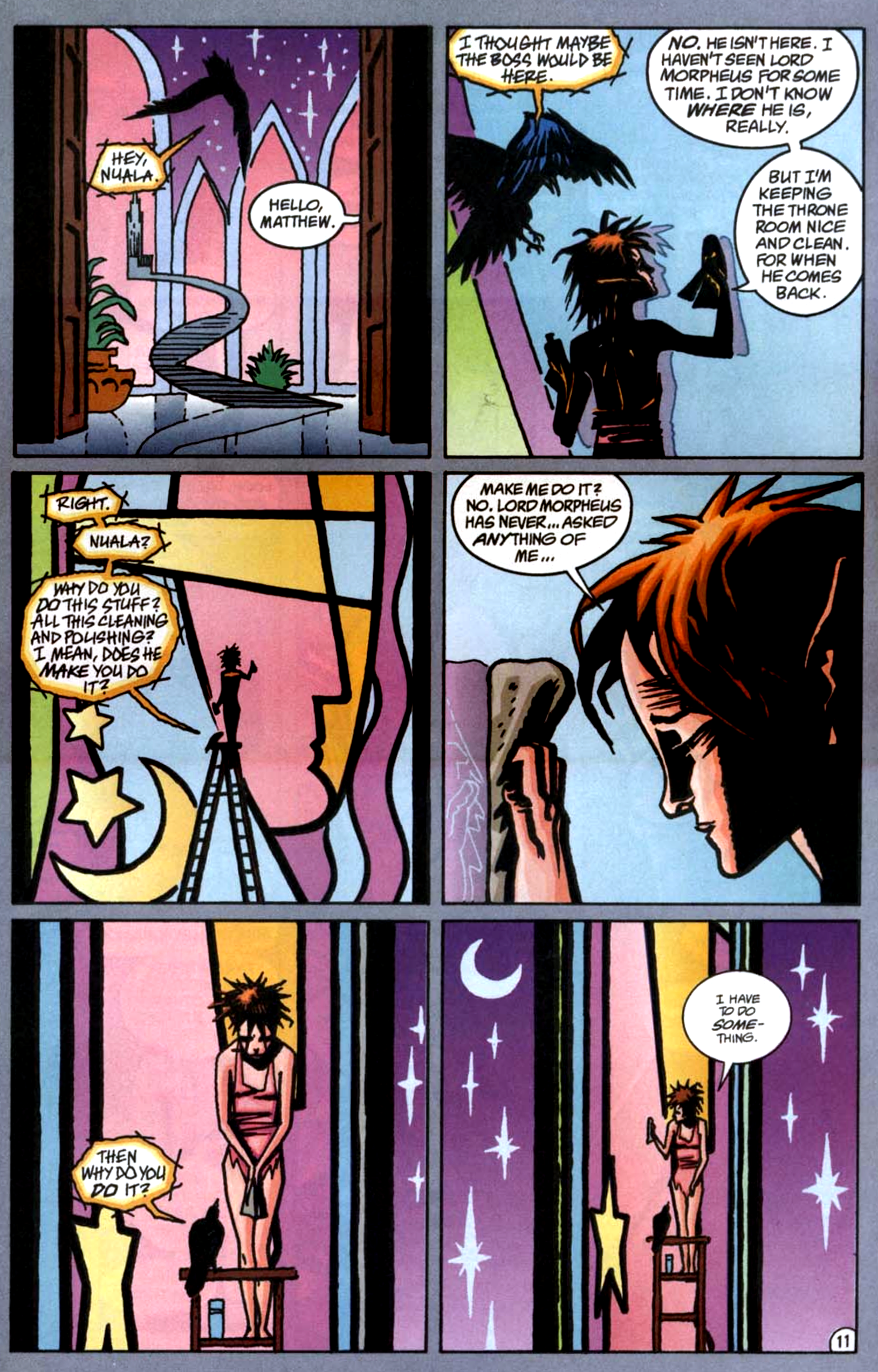It doesn’t look like a great relationship. And to add an additional level of fun here, Dream absolutely does not see anything wrong with Nuala’s forced servitude. Other characters refer to her vassalage, but Dream…