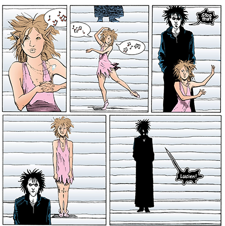 However, Dream lets her be who she truly is. She does not need her glamour while toiling in the halls of Dream’s castle. She is a free woman (slave) who is free to fall in love with anyone she chooses (who happens to be her literal master). And how does the titular Sandman react to the love of his retainer?