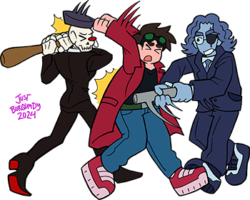 Our very own Chromes drew that “fan art” of BEAT, Goggle Bob, and fanboymaster knocking the nonsense out of each other.